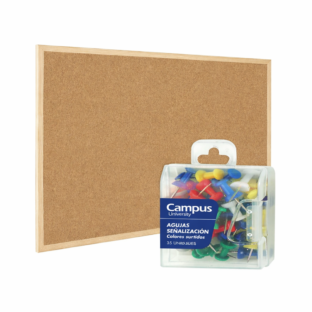 Kit Cartelera de Corcho Bi-Office y Pincha Papeles Campus University